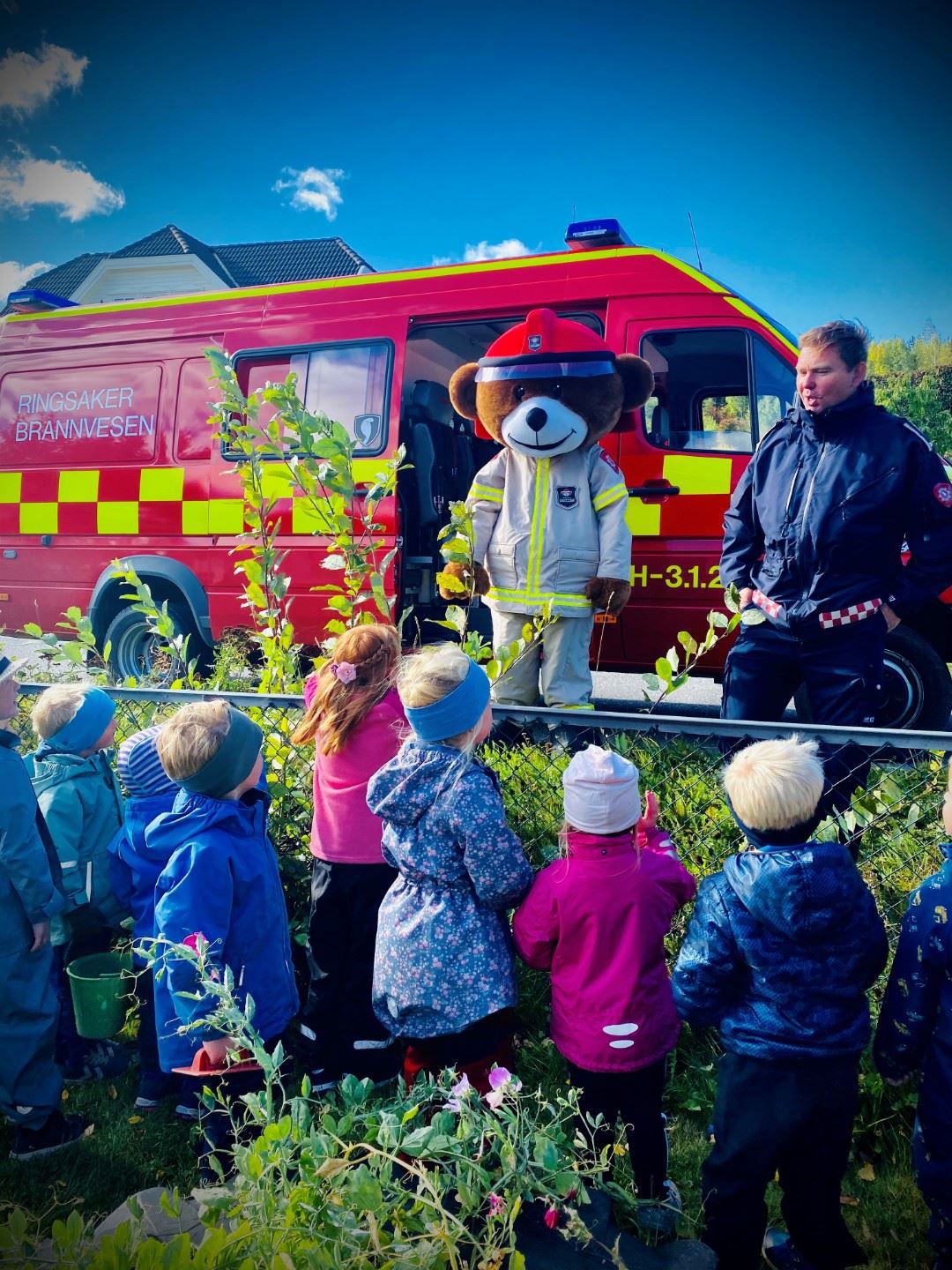 I Stavsberg barnehage vil vi denne uken sette fokus på brannvern og brannsikkerhet. Vi gjennomfører brannøvelse, vi får besøk av brannvesenet og brannbamsen Bjørnis, og vi snakker om røykvarslere, rømingsveier, nødnummer etc.